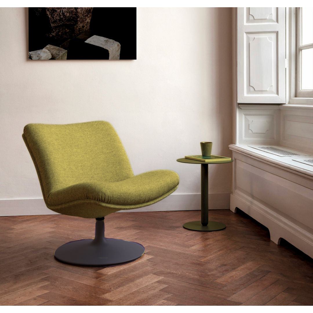 Matière : Pieds pivotant noir, coque en tissus artifort select jaune chiné.