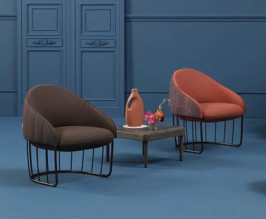 Fauteuil Tonella de la marque Sancal, l‘assise, le dossier et les accoudoirs de style Marie-Antoinette sont en mousse de polyuréthane moulée.